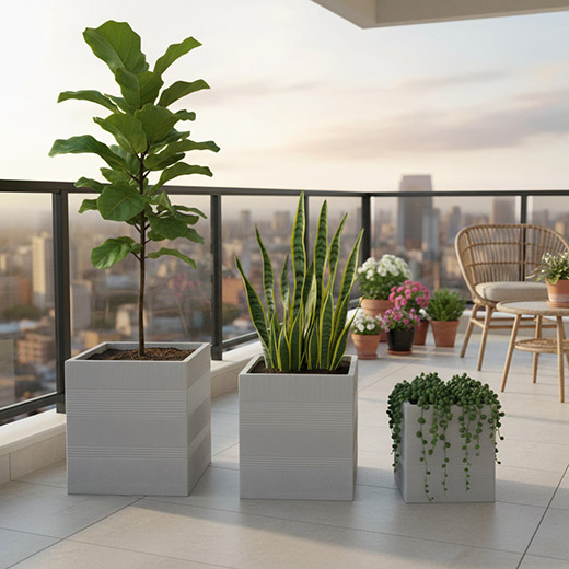 Finished in a warm mineral tone, Nyla blends effortlessly into gardens, terraces, balconies, and poolside areas. Whether displayed as a single statement piece or styled as a coordinated group, these planters add depth and harmony while allowing plants to remain the focal point.